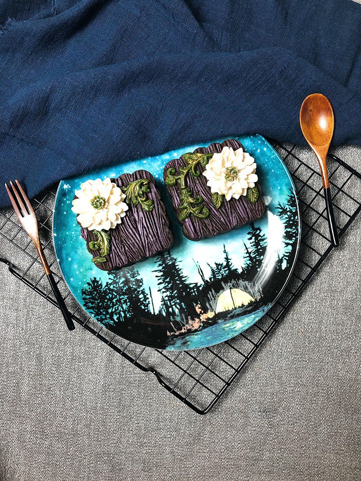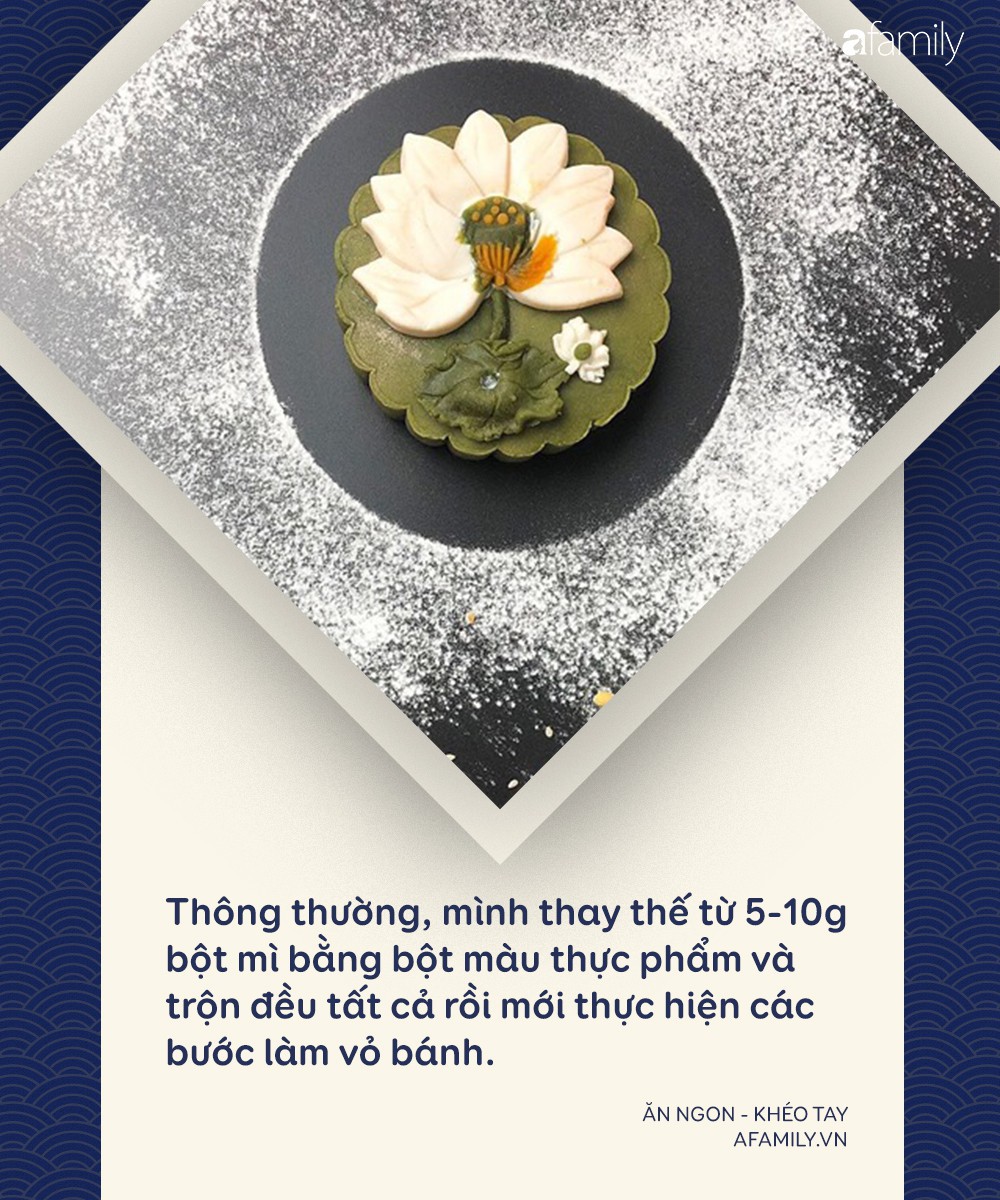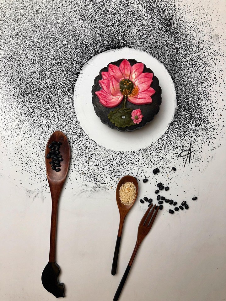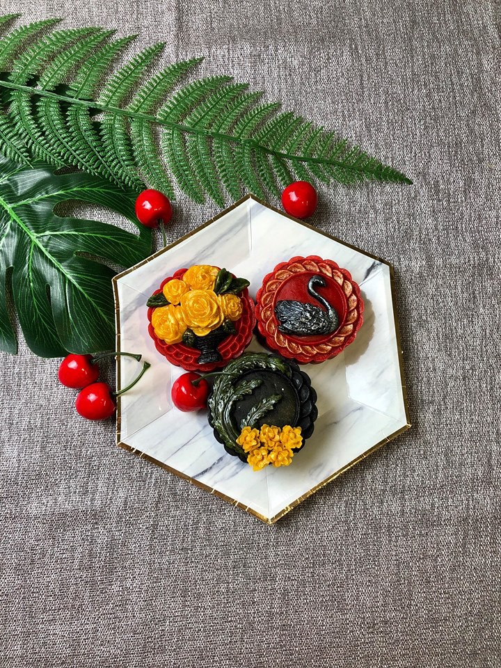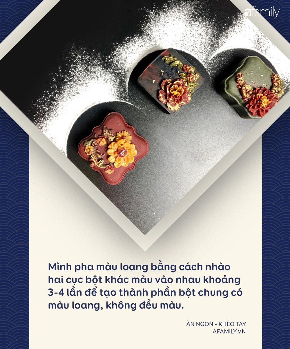 Bánh không có khác biệt lớn về nhân hay vỏ, nhưng cực kì trau chuốt ở khâu tạo hình trên mặt bánh. Những cánh hoa, chiếc lá làm từ đường fondant hoặc bột màu được gắn lên và bày trí sinh động, khiến hộp bánh giở ra như một bức tranh đầy màu sắc.